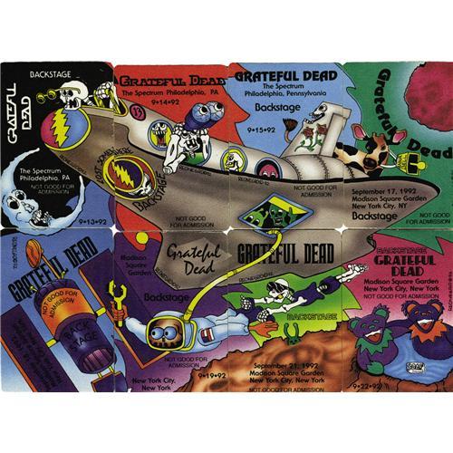 <B>Grateful Dead Concert Backstage Pass "Puzzle" Group (1992).</B></I> A really nice batch of passes here for shows in NYC and Philadelphia. When put together the picture shows skeleton astronauts with a space shuttle and a satellite. All eight passes are in Near Mint condition and will make a great addition to one lucky "Deadheads" collection!