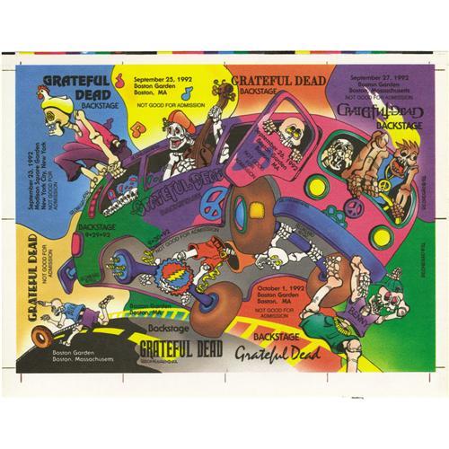 <B>Grateful Dead Backstage Passes Uncut Sheet (Grateful Dead Productions, 1992).</B></I> Something truly scarce: an uncut sheet of backstage passes for the Dead shows at Madison Square Garden and Boston Garden in the Fall of 1992. Most sheets were cut down at the offices of the Dead before they were shipped to the final location. This rarity is in NM condition.