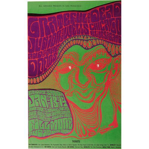 <B>Grateful Dead/Doors Fillmore Auditorium Concert Poster, BG-45 (Bill Graham, 1967).</B></I> Artist Wes Wilson outdoes himself on this wildly lettered design, printed in glowing shades of green, red, and purple. This is a first edition, one of two variations listed in Eric King's <I>Collector's Guide to Psychedelic Posters, Postcards and Handbills 1965-73, Vol.1.</B></I> On this version, the long, flowing line directly under the Bill Graham credit at the top of the poster is primarily black, with a thin band of purple showing below. The other variation is an all-purple line; on the reprint, this line is solid black. The poster measures approximately 14" x 22", and is in NM condition.<BR><BR><b>Shipping:</b> Flat Material, Large (<a target="_blank" href="http://www.heritageauctions.com/common/shipping.php">view shipping information</a>)