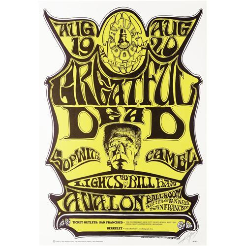 <B>Grateful Dead "Frankenstein" Signed Avalon Ballroom Concert Poster, FD-22 Third Printing (Family Dog, 1966)</B></I> Artist Alton Kelley added his distinctive signature in pencil to this famous poster. One of the things that make this one so well-known is the misspelling (in large letters) of the band's name! Kelley must have been smoking some really good boo! A very clean NM copy, featuring vivid yellow inks. Approximate size is 14 1/8" x 20 7/16".<BR><BR><b>Shipping:</b> Other (oversized items, group lo (<a target="_blank" href="http://www.heritageauctions.com/common/shipping.php">view shipping information</a>)
