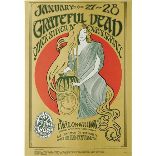 <B>Grateful Dead "Girl in the Red Circle" Avalon Ballroom Concert Poster, FD-45 Second Printing (Family Dog, 1967).</B></I> A lighter gold tone and slightly smaller size (13 7/8" x 20 1/16") lead us to believe this is a second printing. It's still a very desirable poster, and this NM beauty, designed by Stanley Mouse and Alton Kelley, should make any Deadhead happy.<BR><BR><b>Shipping:</b> Other (oversized items, group lo (<a target="_blank" href="http://www.heritageauctions.com/common/shipping.php">view shipping information</a>)