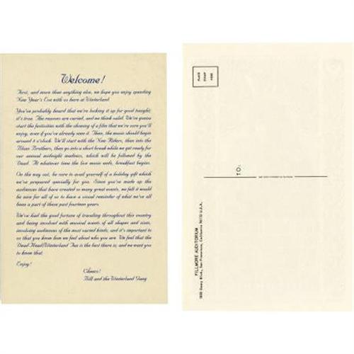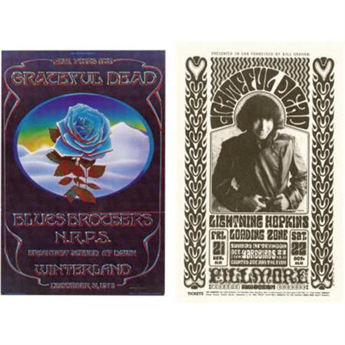 <B>Grateful Dead Handbill and Postcard Group (Bill Graham, 1966-78).</B></I> Bill Graham Presents Grateful Dead, Lightning Hopkins, and Loading Zone at the Fillmore Auditorium postcard. Oct 21-2, 1966. Grateful Dead, Blues Brothers, and New Riders of the Purple Sage Winterland handbill. December 31, 1978. Measures 5" x 7.5 ." Average NM- condition.<BR><BR><b>Shipping:</b> Flat Material, Small (<a target="_blank" href="http://www.heritageauctions.com/common/shipping.php">view shipping information</a>)
