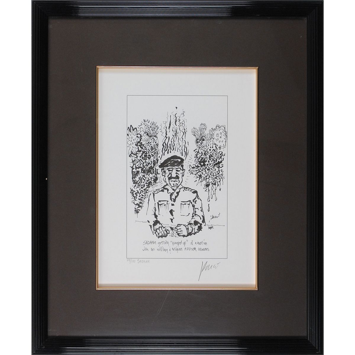 Limited edition 9 x 12.5 lithograph entitled ‘Sadaam,’ numbered 29/100, signed in the lower border in pencil. Matted and framed to an overall size of 16.75 x 20.25. In very fine condition.