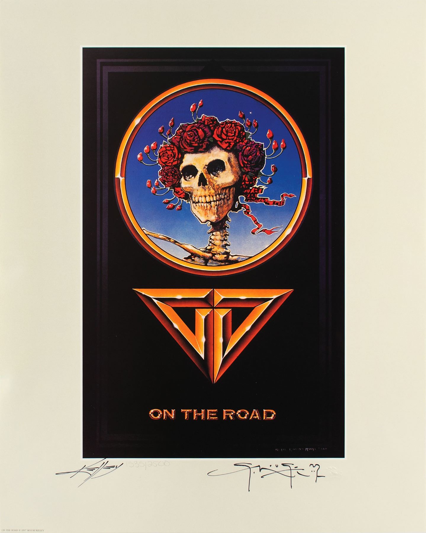 Lithograph suite containing four prints issued in 1997 to commemorate Grateful Dead tours and albums of the 1970s. Each color 16 x 20 print is numbered 1535/2500 and signed in the lower border in black felt tip by artists Stanley Mouse and Alton Kelley. Titles include: 'Ice Cream Kid/Rainbow Foot,' 'On the Road,' 'Jester,' and 'Pegasus.' In fine condition. Accompanied by a gilt-stamped binder and four certificates of authenticity from the publisher.