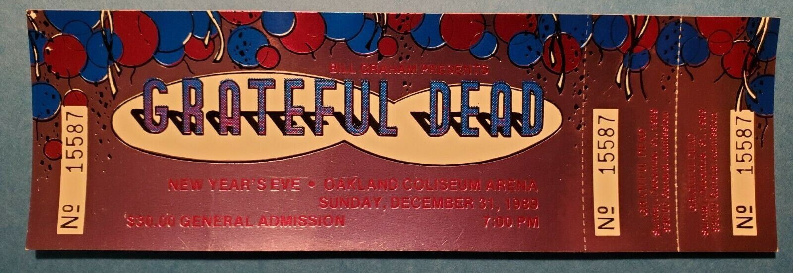 This is an original, gorgeous unused full ticket for the Grateful Dead, December 31, 1989, at the Oakland Coliseum Arena, Oakland, California.