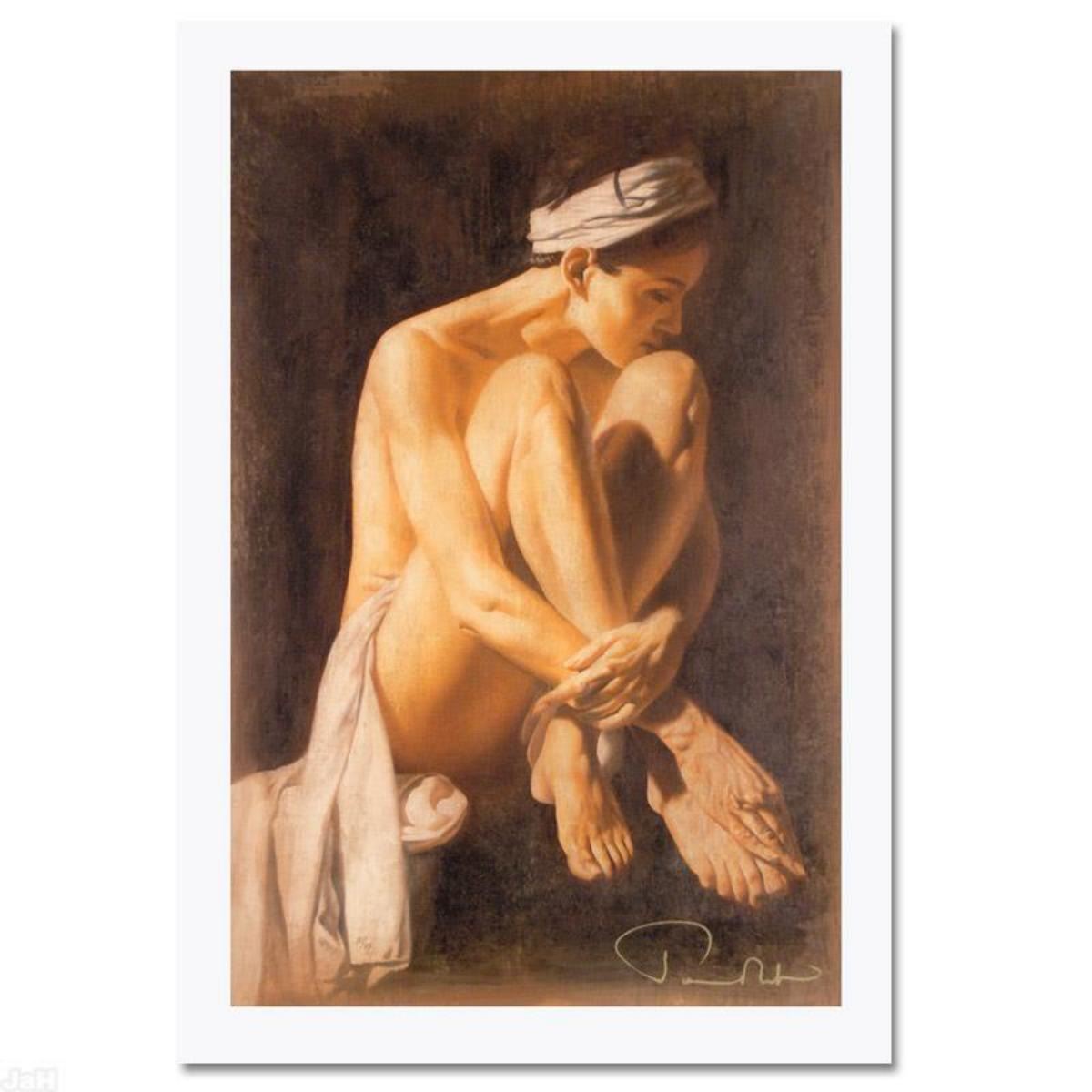With a style that is reminiscent of the frescoes of Michelangelo and Caravaggio, Tomasz Rut creates breathtaking works of art that capture the beauty of the human form. "Gratia" is a limited edition giclee on canvas, numbered and hand signed by Rut. Includes Certificate of Authenticity! Measure approx. 18.5" x 29" (image). Reference #: 172556