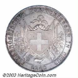 <TABLE cellSpacing=0 cellPadding=0 width="100%" bgColor=#000000 border=0><TBODY> <TR><TD width="100%"><TABLE cellSpacing=1 cellPadding=3 width="100%" border=0><TBODY><TR><TD width="100%" bgColor=#79735c><FONT face=arial color=#ffffff size=3><B>Description</B> </FONT></TD></TR><TR><TD width="100%" bgColor=#ffffff><FONT face=arial size=2><B>Graubunden 4 Francs 1842,</B></I> Chur in Graubunden Shooting Festival, KM17, UNC, light attractive toning, one small rim flaw, as struck, on the reverse. </FONT></TD></TR></TBODY></TABLE></TD></TR></TBODY></TABLE><BR><A name=PricesRealized></A><TABLE cellSpacing=0 cellPadding=0 width="100%" bgColor=#000000 border=0><TBODY><TR><TD width="100%"><TABLE cellSpacing=1 cellPadding=3 width="100%" border=0><TBODY><TR><TD width="100%" bgColor=#79735c><A name=PR><FONT face=arial color=#ffffff size=3><B>Previous Prices from Heritage Auctions</B> </FONT></A></TD></TR><TR><TD bgColor=#f6f6ed>No Prior Data Recorded </TD></TR><TR><TD bgColor=#ffffff><FONT face=arial size=1 ?>PLEASE NOTE: All prices realized reflect the final hammer price PLUS the buyer's premium in auctions that charge a buyer's premium. Each item has a notation at the top of the listing indicating whether that lot included a buyer's premium. Example: A item that sells with a final hammer price of $100 and a 20% buyer's premium will display with a price realized of $120. All information listed is intended to be as accurate as possible, but errors are possible. Please use this guide carefully and inform us of any inaccuracies. </FONT></TD></TR></TBODY></TABLE></TD></TR></TBODY></TABLE><BR><TABLE cellSpacing=0 cellPadding=0 width="100%" bgColor=#000000 border=0><TBODY><TR><TD width="100%"><TABLE cellSpacing=1 cellPadding=3 width="100%" border=0><TBODY><TR><TD width="100%" bgColor=#79735c colSpan=6><FONT face=arial color=#ffffff size=3><B>Price Guide*</B> </FONT></TD></TR><TR bgColor=#f6f6ed><TD align=middle><B>Grade</B> </TD><TD align=middle><B>Coin World<BR>(Trends)</B> </TD><TD align=middle><B>Numismedia<BR>Retail</B> </TD><TD align=middle><B>Numismedia<BR>Wholesale</B> </TD><TD align=middle><B>Coin<BR>Universe</B> </TD><TD align=middle><B>Heritage<BR>Value Index</B> </TD></TR><TR bgColor=#ffffff><TD colSpan=6><FONT size=1>*All information listed is intended to be as accurate as possible, but errors are possible. No item may be returned or refused based on this information which is provided as a service to our customers. You should contact each pricing source directly to determine the accuracy of this information. </FONT></TD></TR></TBODY></TABLE></TD></TR></TBODY></TABLE><BR><TABLE cellSpacing=0 cellPadding=0 width="100%" bgColor=#000000 border=0><TBODY><TR><TD width="100%"><TABLE cellSpacing=1 cellPadding=3 width="100%" border=0><TBODY><TR><TD width="100%" bgColor=#79735c><FONT face=arial color=#ffffff size=3><B>Population Guide</B> </FONT></TD></TR><TR bgColor=#ffffff> Important notice: Heritage usually auctions material at the rate of 200-250 lots per hour. On some occasions eBay Live bid software or the Internet may not be able to keep up with the pace of the auction. We recommend placing a realistic absentee bid now as insurance to avoid disappointment. Occasionally the auctioneer may eliminate or reject an eBay Live bid, and the auctioneer may also reopen a lot after the close of the eBay live bidding (usually because we missed an audience bid), and may reject your bid even if it shows you as the winning bidder. By bidding via eBay Live, you agree that Heritage may award the lot to another bidder at its sole discretion under the circumstances described above or any other reasonable circumstances. Also please note that all Heritage lots purchased through eBay Live carry a 20% Buyer's Premium. Please make sure you read the Terms and Conditions before you bid.</TD></TR></TBODY></TABLE></TD></TR></TBODY></TABLE>