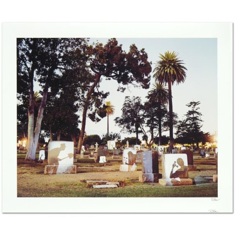 "Graveyard Spirits" is a limited edition on paper, numbered and hand signed by photographer, Robert Sheer. Sheer created this piece using his "Spirit Shadows" technique which involves using a single-exposure ranging from minutes to hours in which he walks into the shot creating figures on film; no photoshop or digital manipulation is involved. Includes Certificate of Authenticity. Measures approx. 28" x 23" (border), 24" x 19" (image).