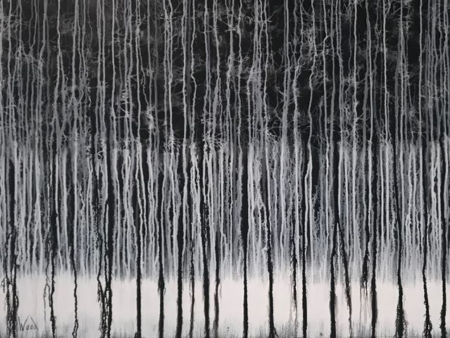 A black & white abstract acrylic painting on stretched canvas by Marion Wood. 30x40", COA.