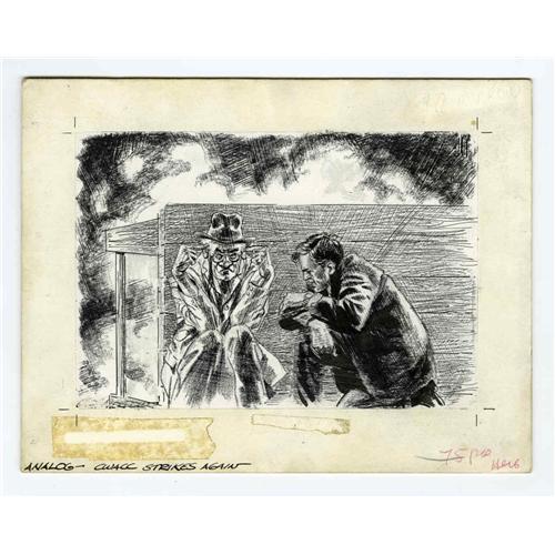 <B>Gray Morrow - Analog, June, 1966, "CWACC Strikes Again" Illustration Original Art (Analog, 1966).</B></I> The late Gray Morrow was one of the most inventive draftsmen in the fantasy art field. For this scene, Morrow created a heavily textured surface using thickly brushed gesso, and then used a drybrush ink technique to create a soft greytone image of an explosion. The image area of the drawing measures 7.5" x 5.25", and the art is in Excellent condition.