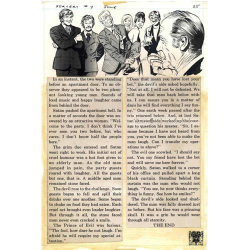 <B>Gray Morrow - Red Circle Sorcery Page Original Art, Group of 2 (Archie, 1974).</B></I> Part original art, part text, these two pages feature illustrations by Gray Morrow. From <B>Red Circle Sorcery</B></I> #6, comes page one from the story, "Black Fog," which was written by T. Casey Brennan, and page two from the story, "The Man Who Would Not Laugh," written by Marv Channing from, which was published in <B>Red Circle Sorcery</B></I> #7. Each page has an image area of 10" x 15". There is some staining on both pages around the text paste-up art, and some overall aging apparent; otherwise the pages are in Good condition.
