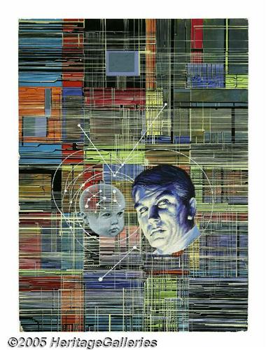 <B>Gray Morrow - "When HARLIE was One" Illustration Original Art (undated).</B></I> Gray Morrow's large cybernetic scene sets the stage for David Gerrod's 1972 novel "When HARLIE Was One." HARLIE is an acronym for Human Analog Replication Lethetic Intelligence Engine -- in short, HARLIE is an Artificial Intelligence. HARLIE's story is built around his relationship with David Auberson, the psychologist who guides him from "childhood" into "adulthood." The novel is also about HARLIE's fight against being turned off, and the philosophical question whether or not HARLIE is human. This striking mixed-media painting on board painting has an overall size of 22' x 30", and the art is in Excellent condition.