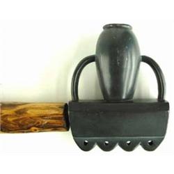 Gray Pipestone Indian Pipe with Beadwork on Wood Stem. 22" Long. Estimate $300 - $500.