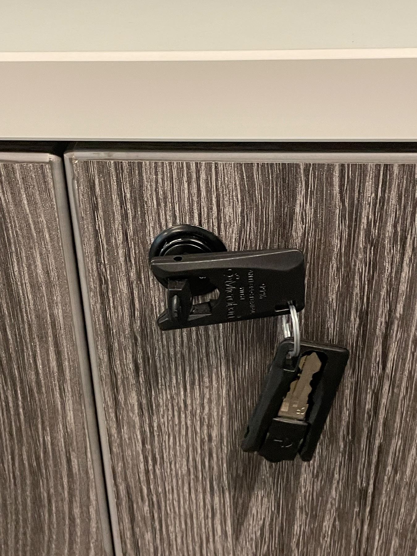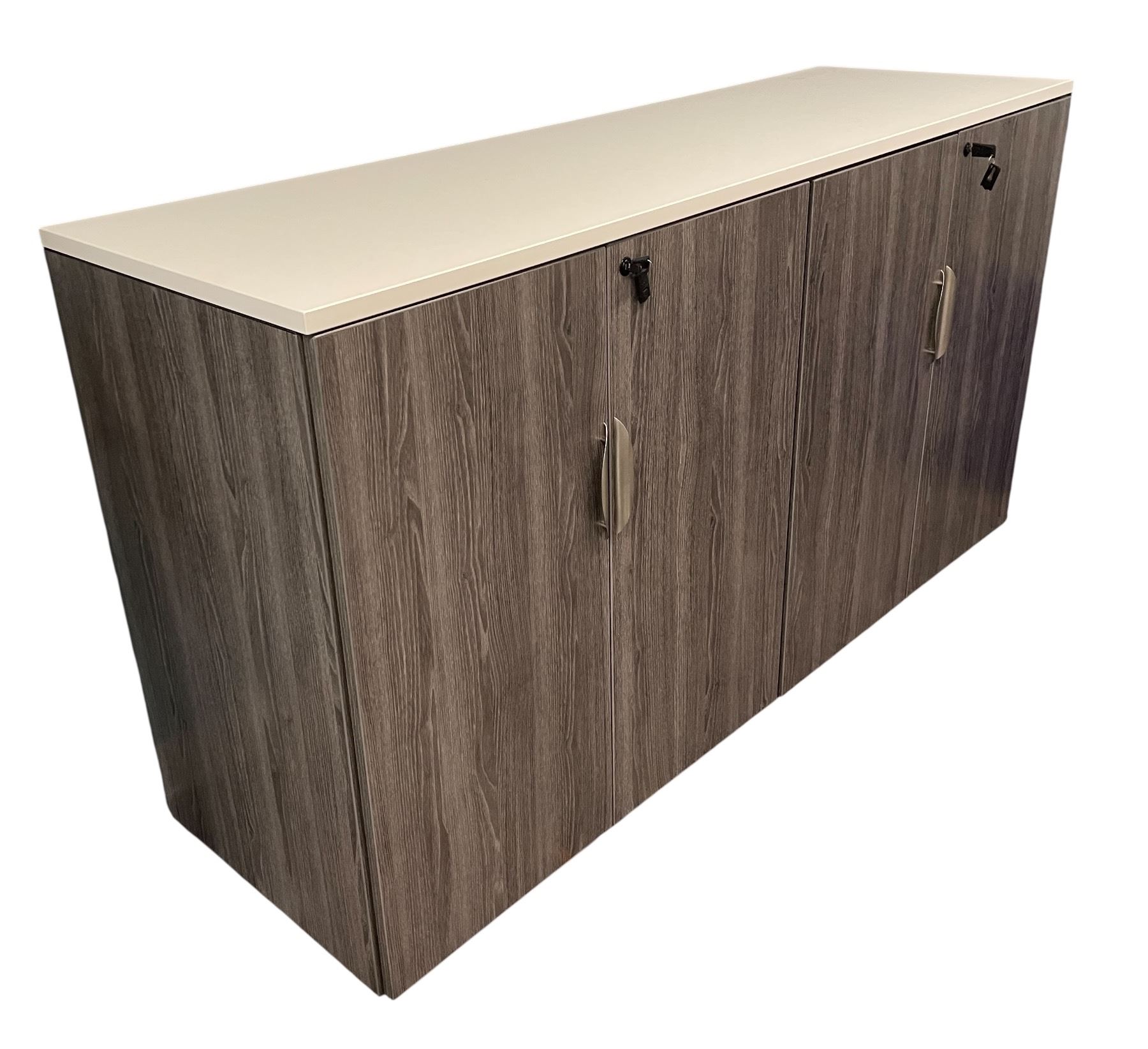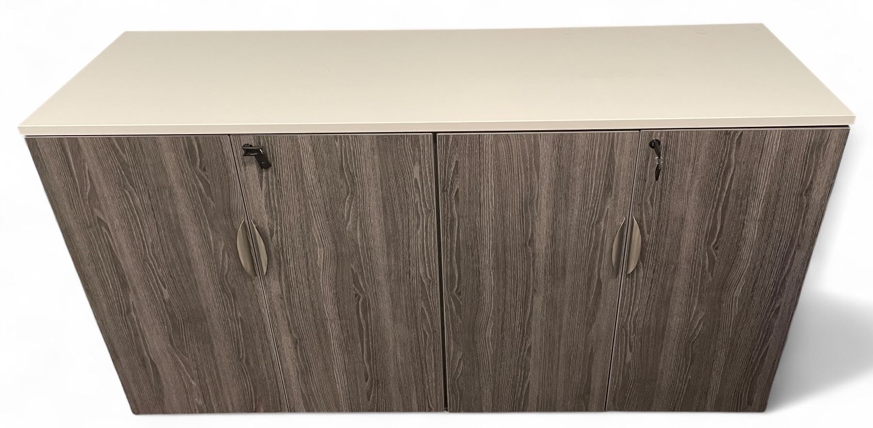 Gray Wood Finish Two-Door Office Cabinet with Keys, Approx. H38" x W71" x D22"