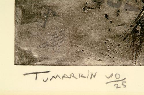 Tumarkin, Ygai (Israel 1933 - ) etching & intaglio, signed and editioned 10 of 25, 10 1/2" by 16 1/4".