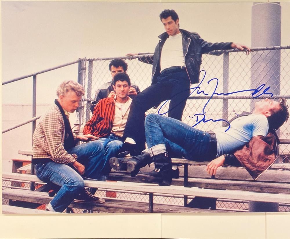 Grease facsimile signed movie photo autographed by John Travolta. 8x10 inches. This item is a reprint of an original autograph