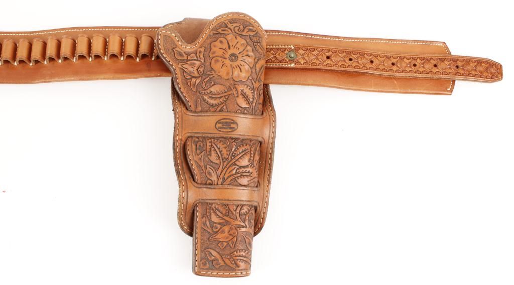 Jr Kerlin cartridge belt, fancy floral tooled, fits a Colt SAA 7 1/2", Colt Python, or S&W 8 3/8".