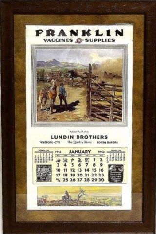 from Lundin Brothers Watford City North Dakota, artwork by Raphael-Lillywhite, 17" X 30", contains all month, framed 25" X 38". Est. 200-400