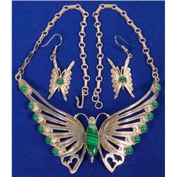 1295 - Malachite Butterfly Necklace Set (120597)Holabird Western Americana Collections