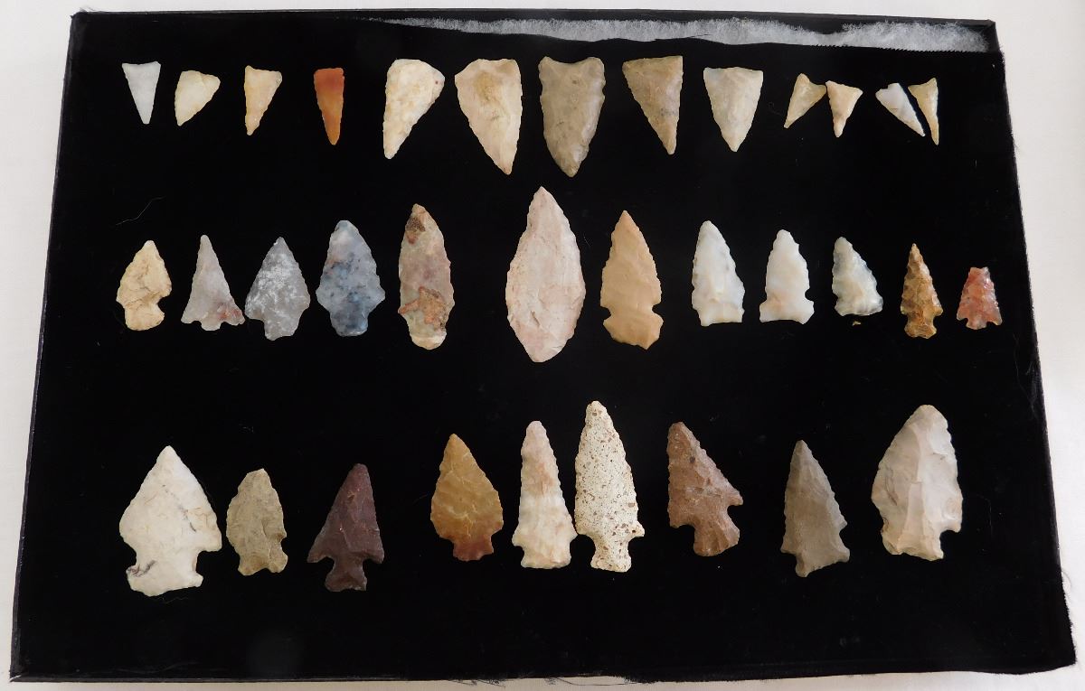 Great Basin Artifact Collection from the archaic period. Items are made from chert and quartz and measure 0.5 to 2 inches. From Colorado. Frame not included. Condition: Field run, as found, see images. Shipping: $15.50