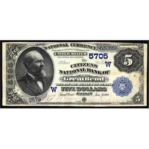 Great Bend, KS $5 1882 Date Back. The Citizens NB