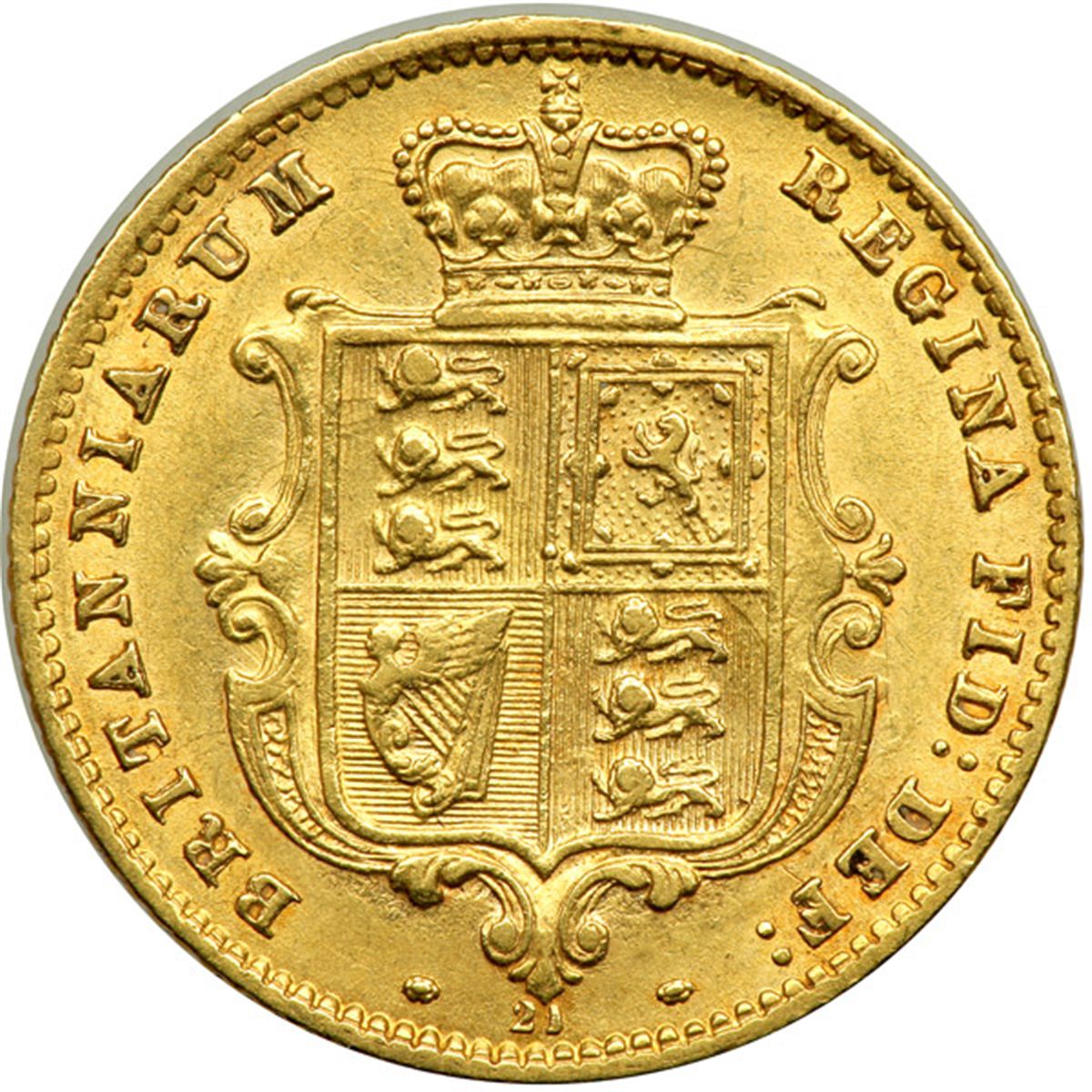 Great Britain. ½ Sovereign, 1867. S.3860; Fr-389f; KM-735.2. Weight 0.1177 ounce. Die #21. Victoria. Young head. Reverse: Shield. Very Fine to Extremely Fine.