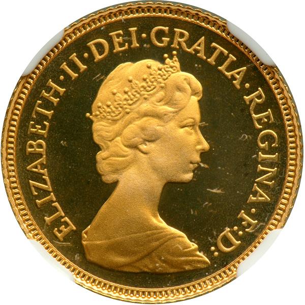 Great Britain. ½ Sovereign, 1980. Fr-421; KM-922. Weight 0.1176 ounce. Elizabeth II. Reverse: St. George slaying the dragon. NGC graded Proof 68 Ultra Cameo.