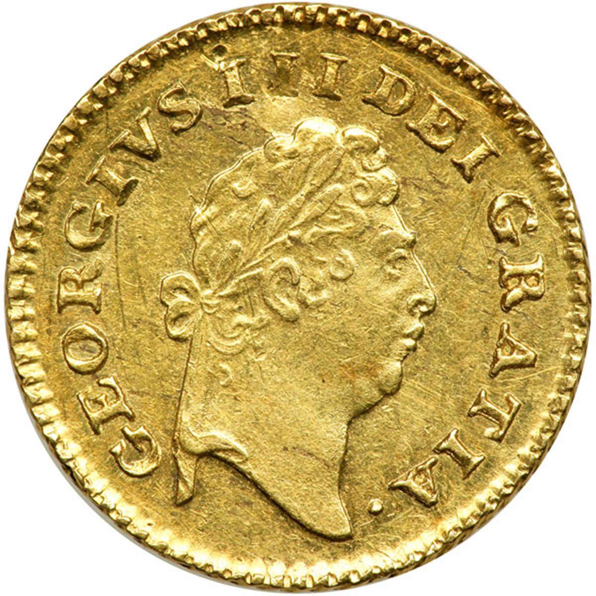 Great Britain. 1/3 Guinea, 1799. S. 3738; Fr-365; KM-620. George III. First laureate head right. Reverse: Crown. Attempted punch mark at top, bent. Some luster remaining. About Extremely Fine.