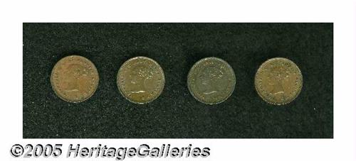 <B>1/4 Farthing lot as follows:</B></I> 1839, XF; 1851, XF; 1852, iridescent AU; and an 1853, VF-XF.