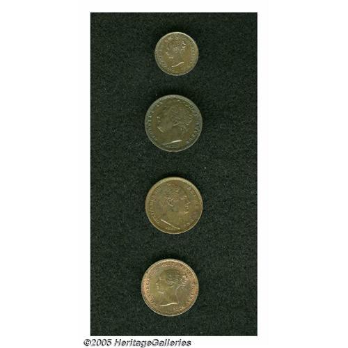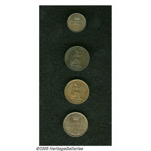 <B>1/4 and 1/2 Farthings including:</B></I> 1/4 Farthing 1852, KM737, AU; 1/2 Farthing 1830, KM704.2, VF; 1/2 Farthing 1837, KM724, VF; and a 1/2 Farthing 1844, KM738, AU. <B>A sold as is, no return lot.</B></I>