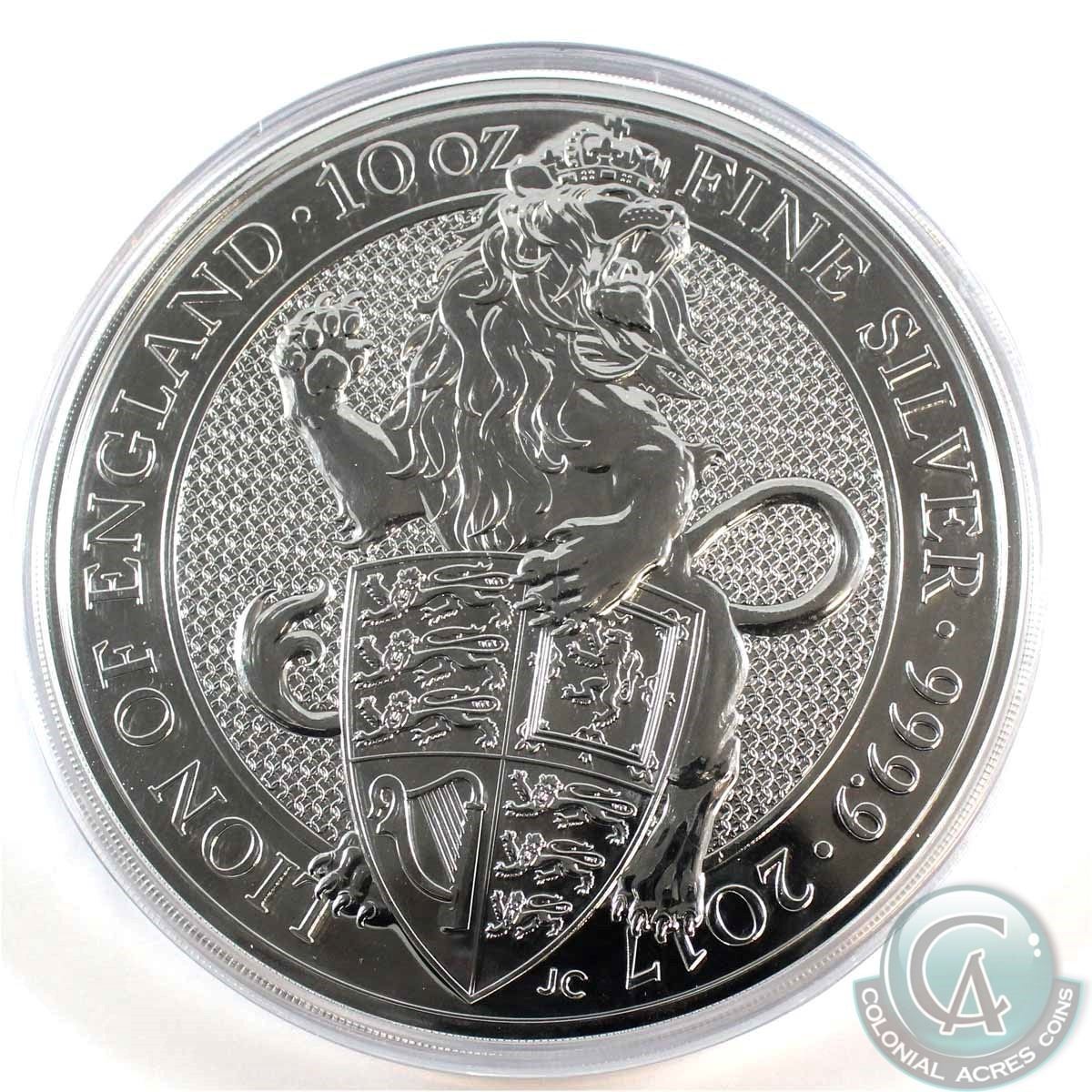 Great Britain 10 Pound Lion of England 10oz .9999 Fine Silver Coin in Capsule (TAX Exempt)
