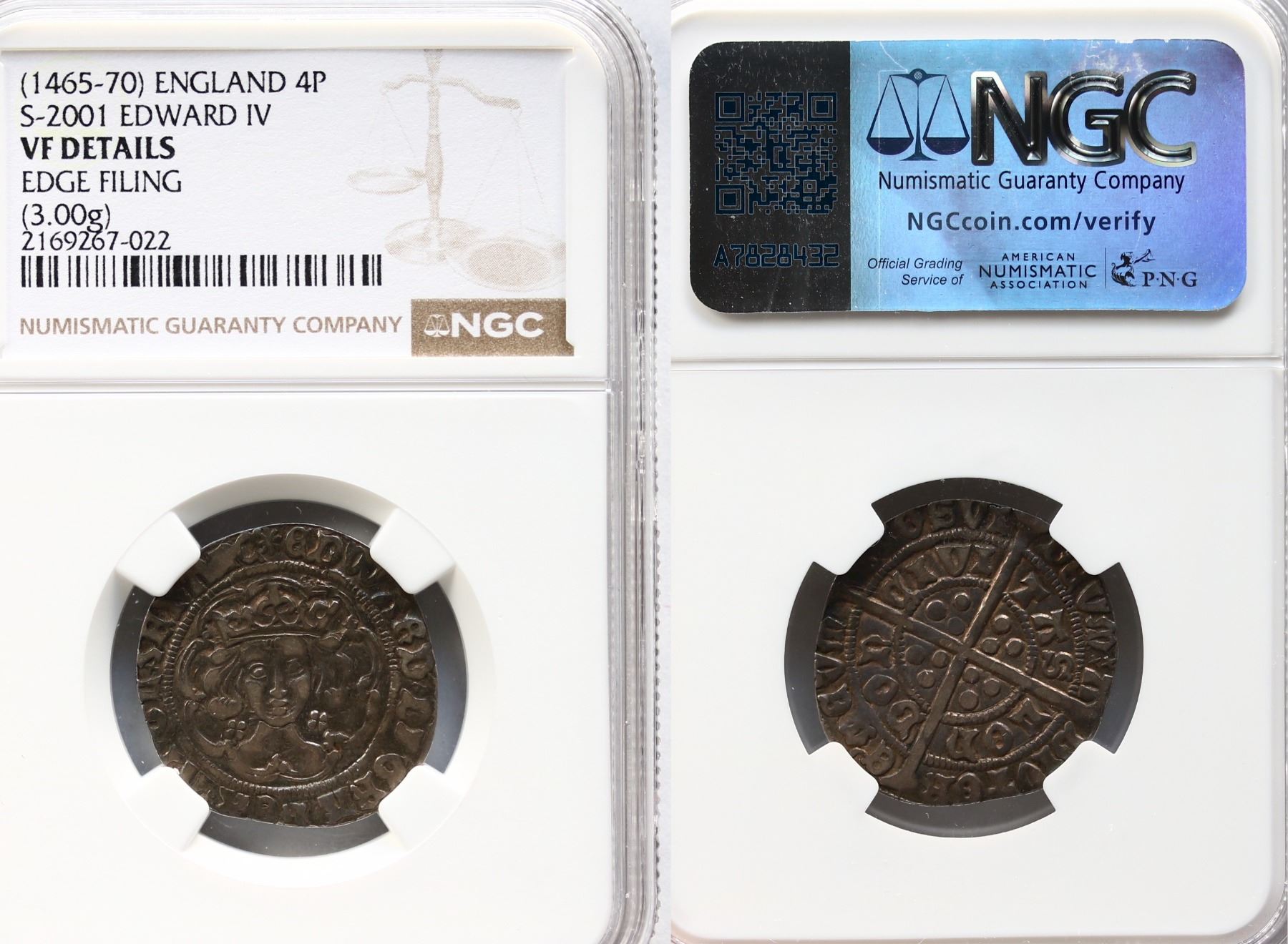 Great Britain; (1465-70) 4P - NGC VF Details edge filing. S-2001 - 3 Grams