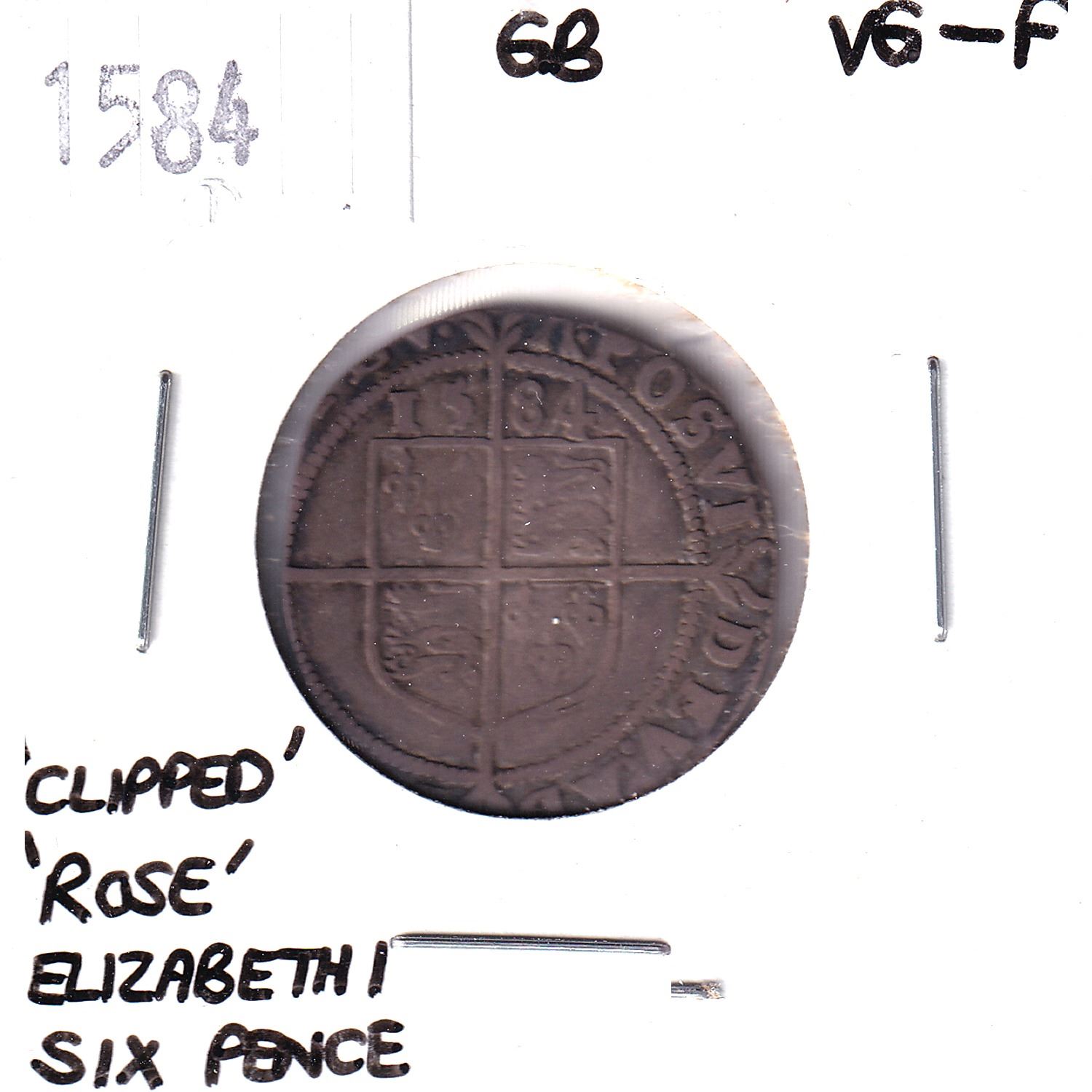 Great Britain 1584 Silver Six Pence Elizabeth I, Rose Variety in VG-F (Clipped)