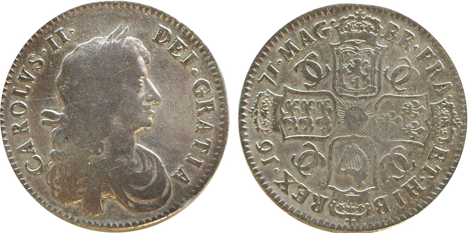 Great Britain; 1671 Half Crown - CharlesVG-F or better. Lightly cleaned.
