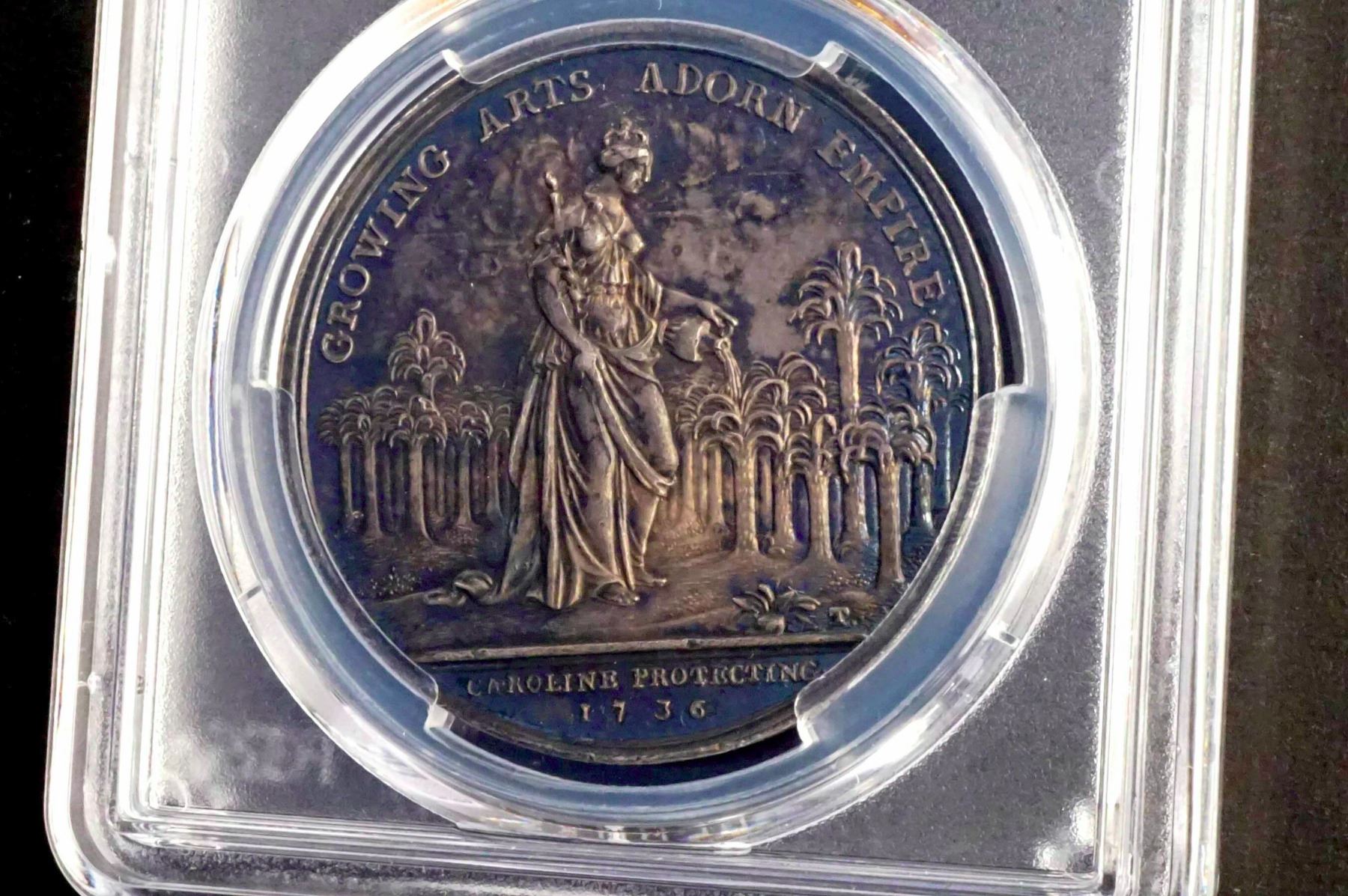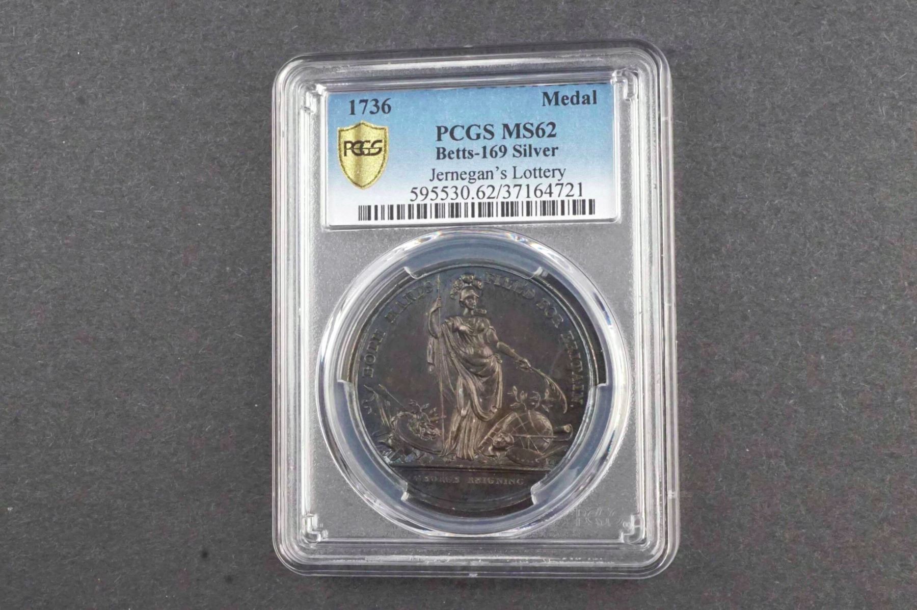 Great Britain 1736, AR-39, King George II, Caroline Jernegan's Lottery, PCGS MS62
