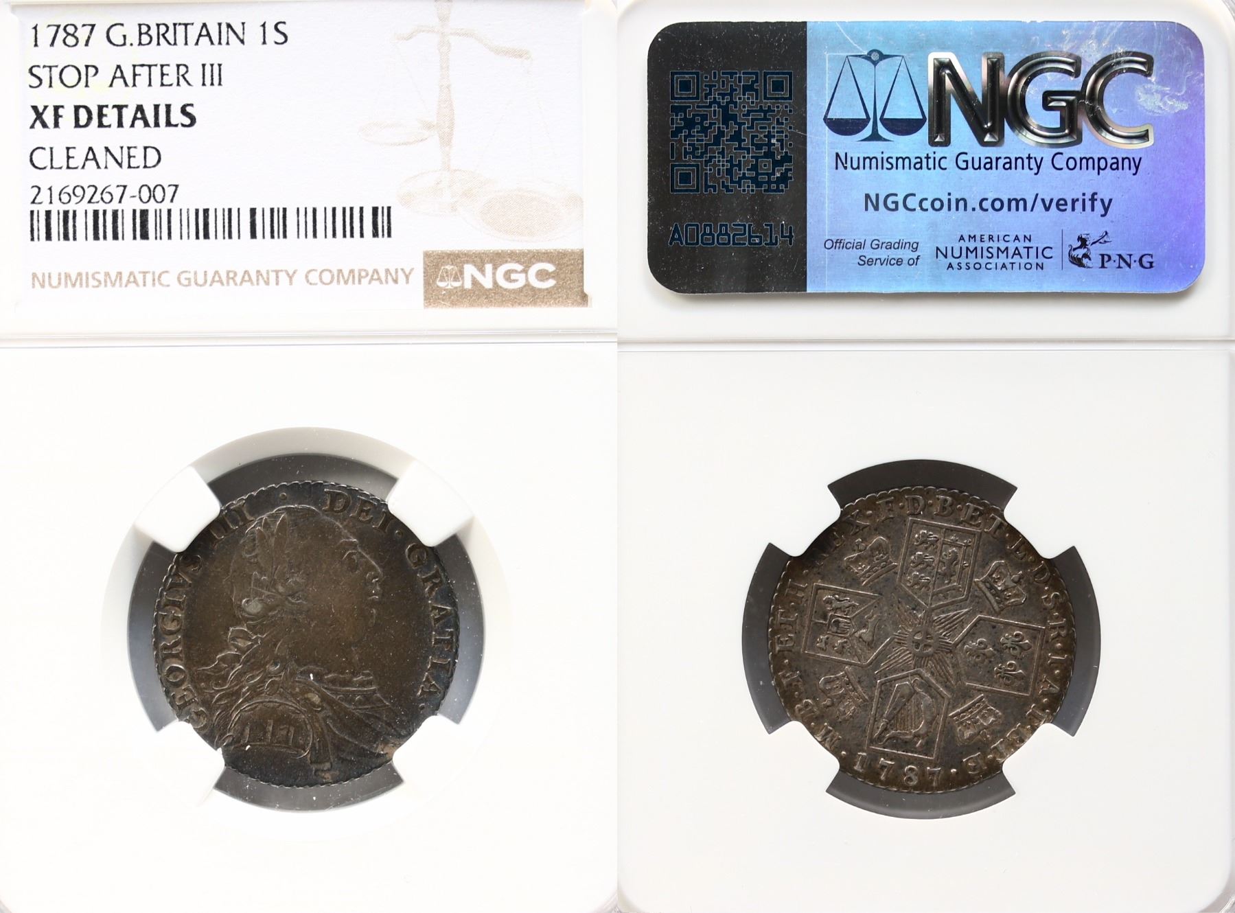 Great Britain; 1787 1S Stop after III NGC XF Details cleaned