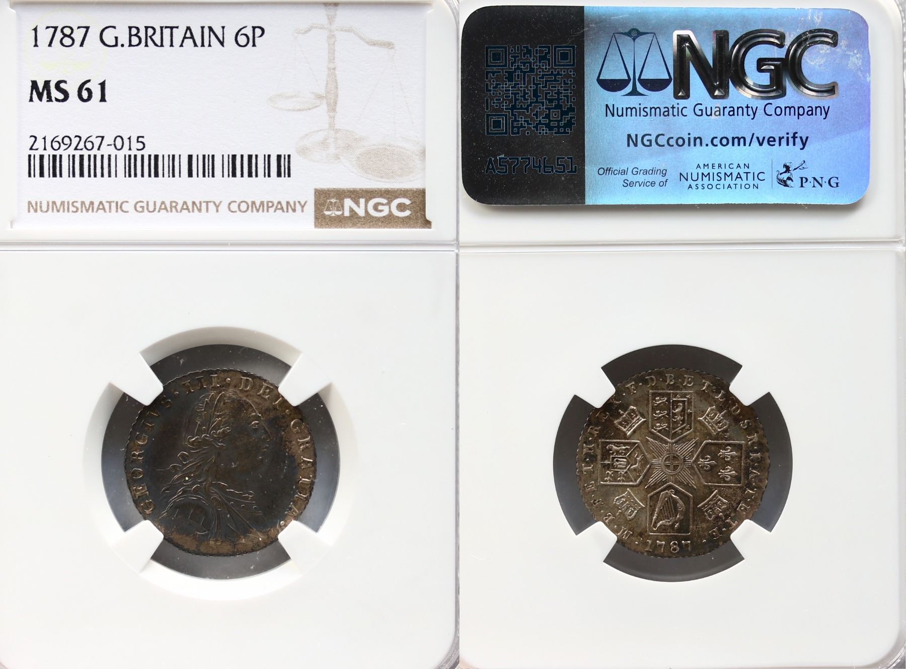 Great Britain; 1787 6P NGC MS61