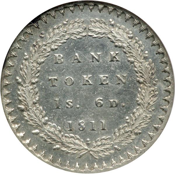 Great Britain. 18 Pence Bank Token, 1811. S.3771; KM-Tn2. George III. Laureate uniformed bust right. Reverse: Legend within wreath. NGC graded MS-63.