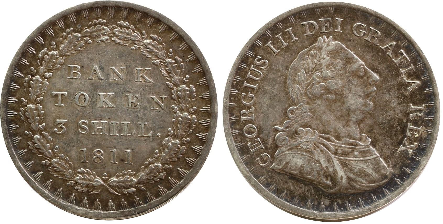 Great Britain; 1811- 3 Shillings - Bank token - EF or better