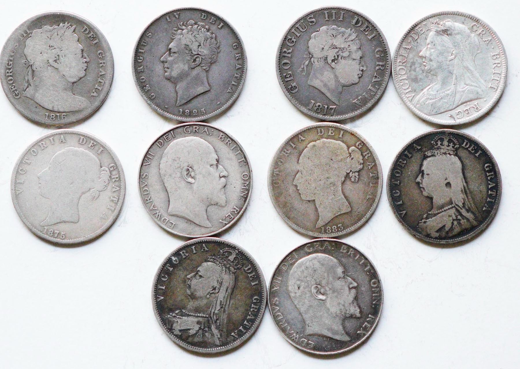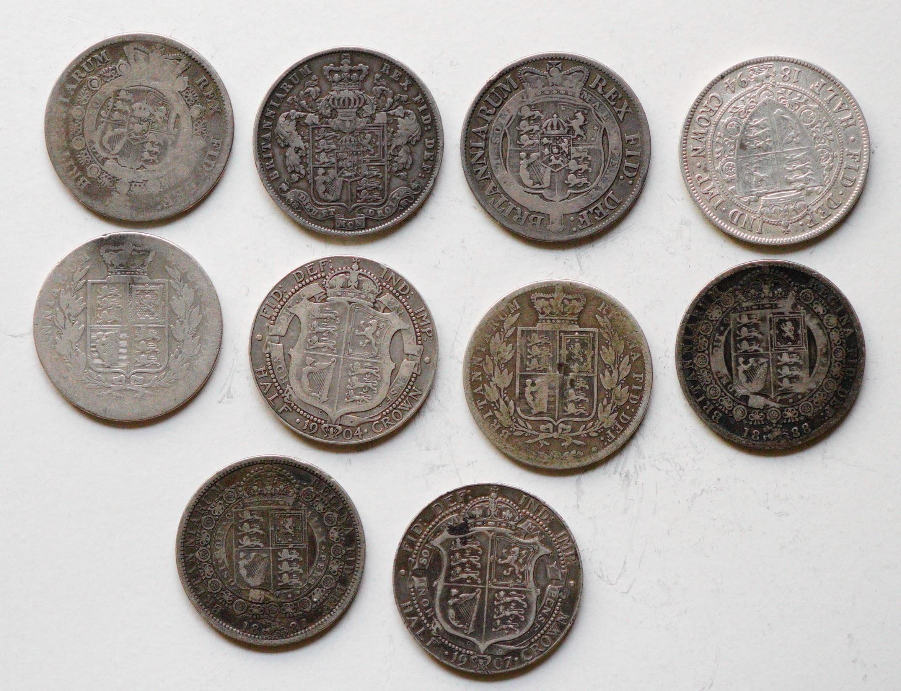 Great Britain; 1816-1907 Halfcrowns VG to VF+. Lot of 10 pieces.