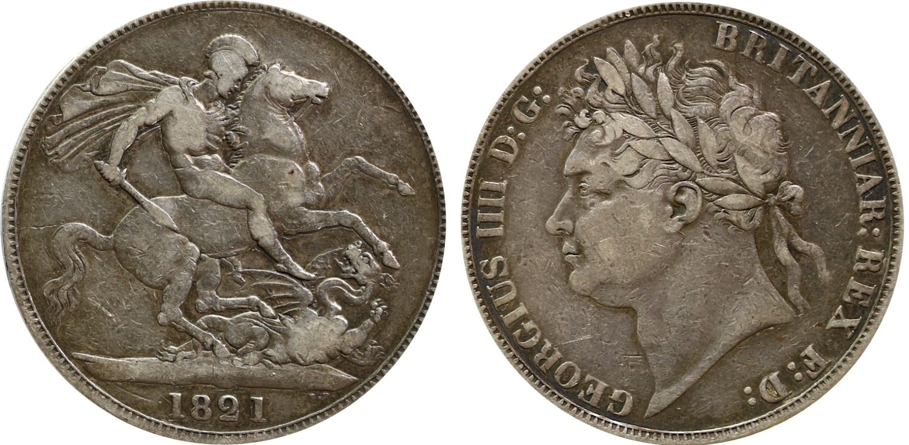 Great Britain; 1821 Crown - Secundo on edge F-VF or better