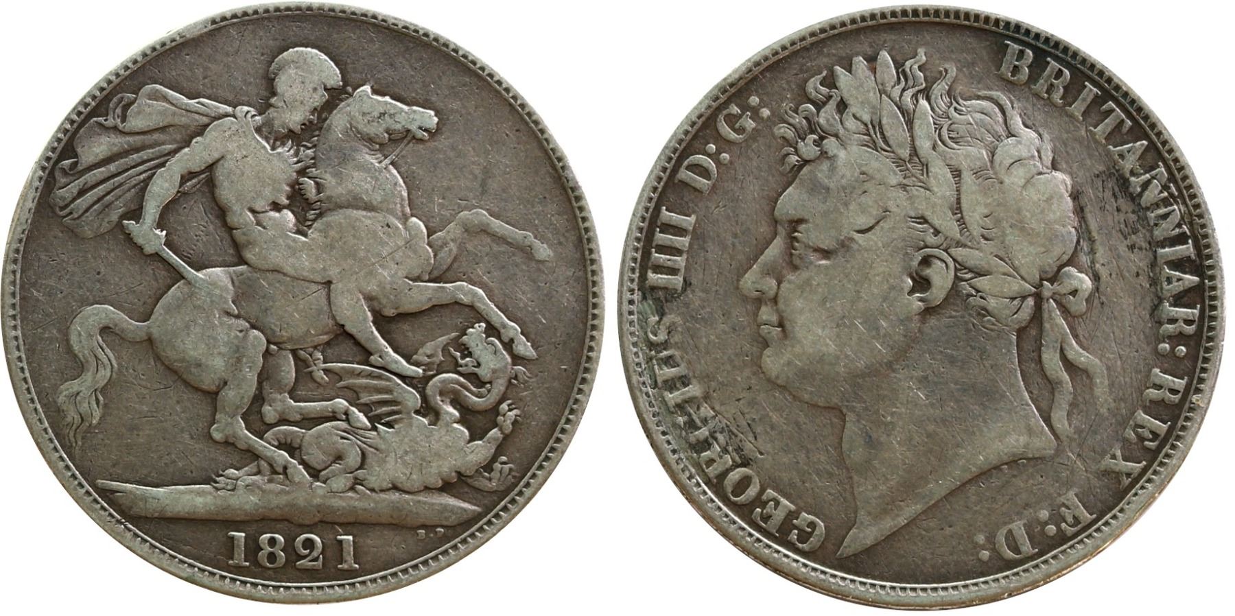 Great Britain; 1821 Crown - Secundo on edge VG-F or better