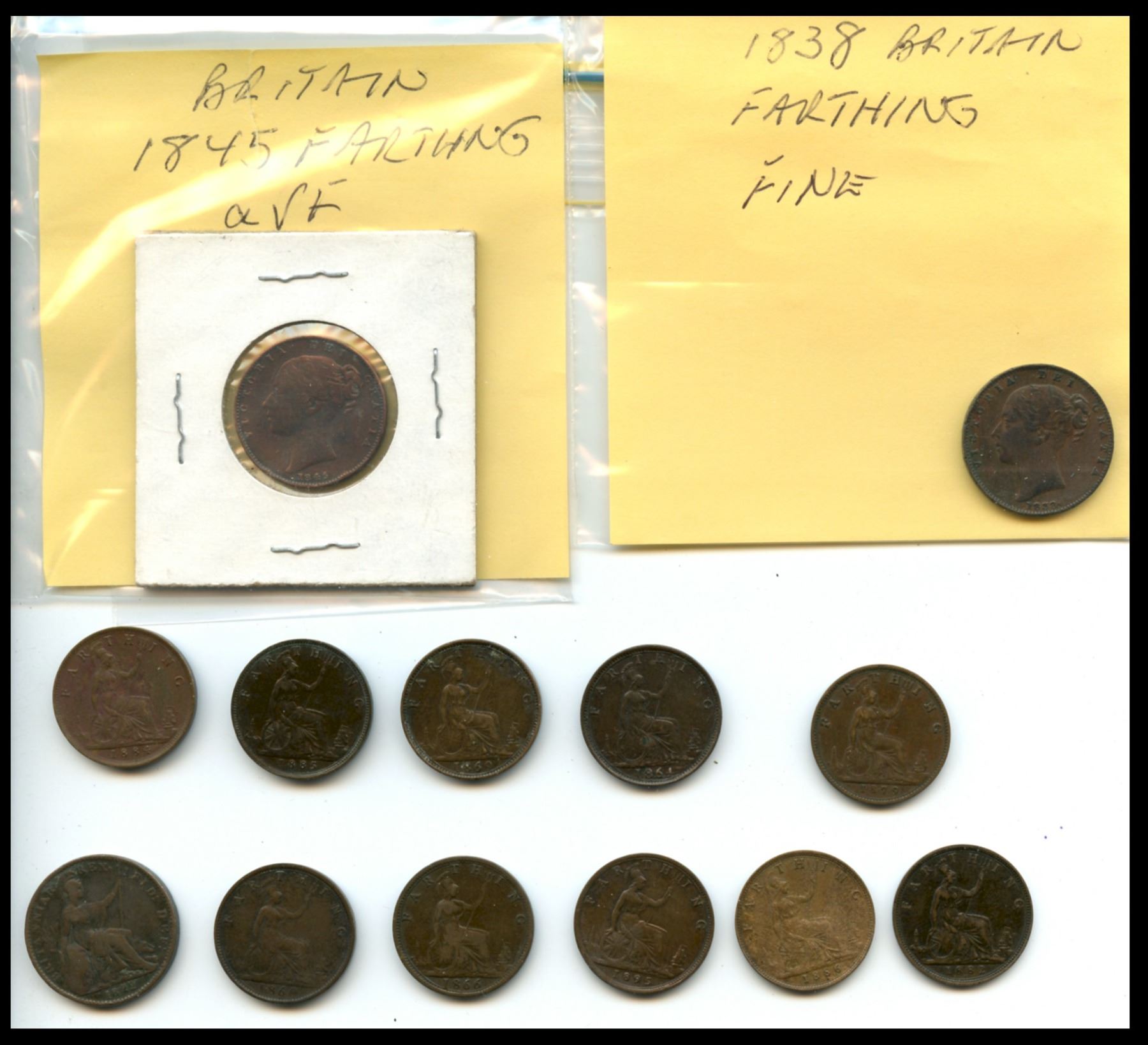 Great Britain; 1822 to 1890 Farthing lot. Includes 13 coins Good to EF grades.