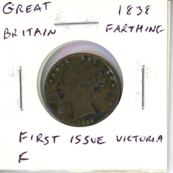 Great Britain. 1838 Farthing. First issue for Queen Victoria. Fine.