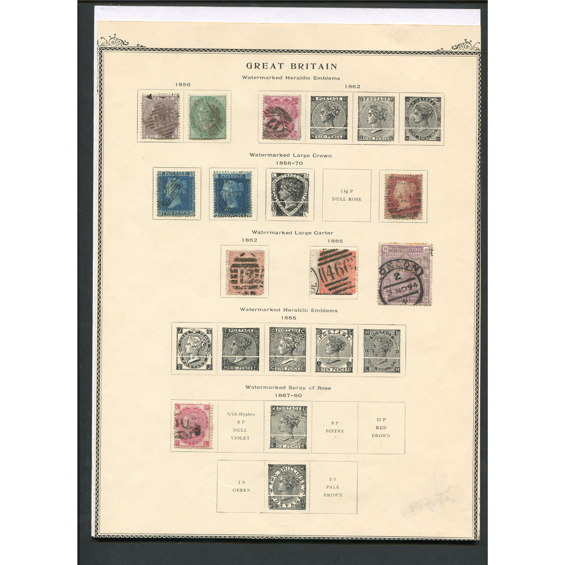 Great Britain 1856 to 1883 Victoria stamp collection. This collection includes 10 stamps. Total S/C value = $1,100.