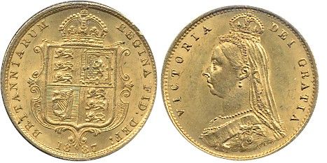 Great Britain; 1887 Gold ½ Sovereign PCGS MS63. KM#766 (,1177oz).
