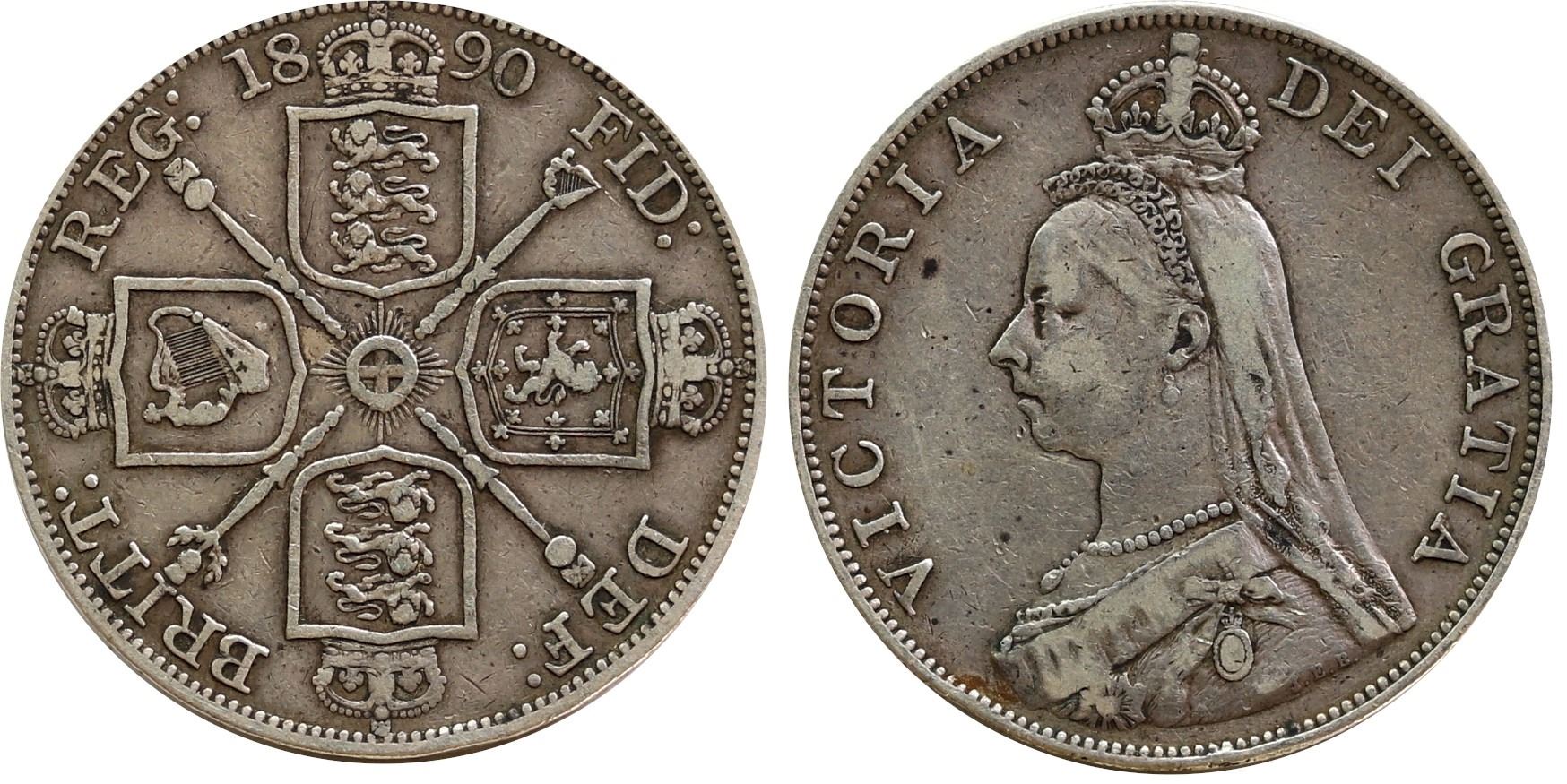 Great Britain; 1890 Double Florin - F-VF or better
