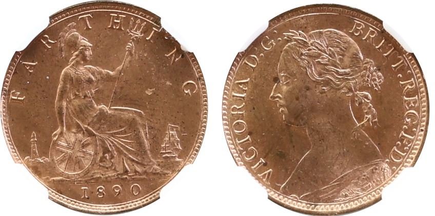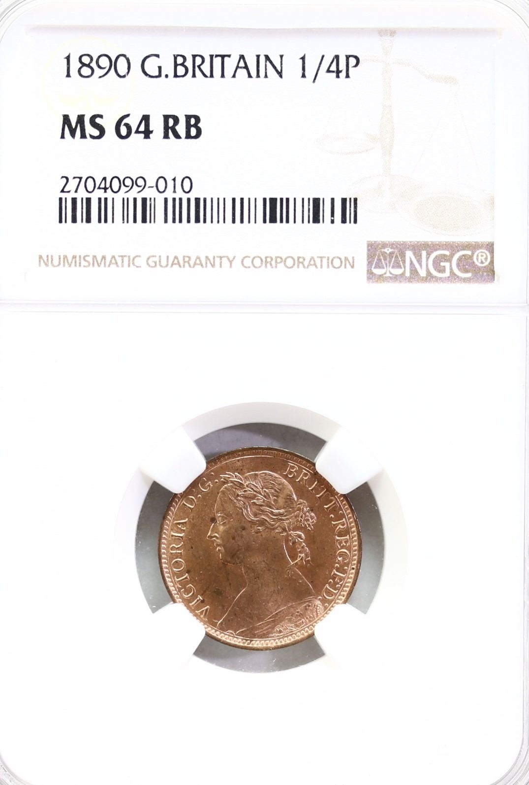 Great Britain; 1890 ¼P, NGC MS64RB. Nice Orignal 90% red and lustrous issue.
