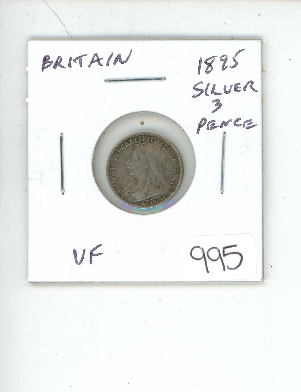Great Britain. 1895 Silver 3 Pence. Queen Victoria Veiled Head. VF.