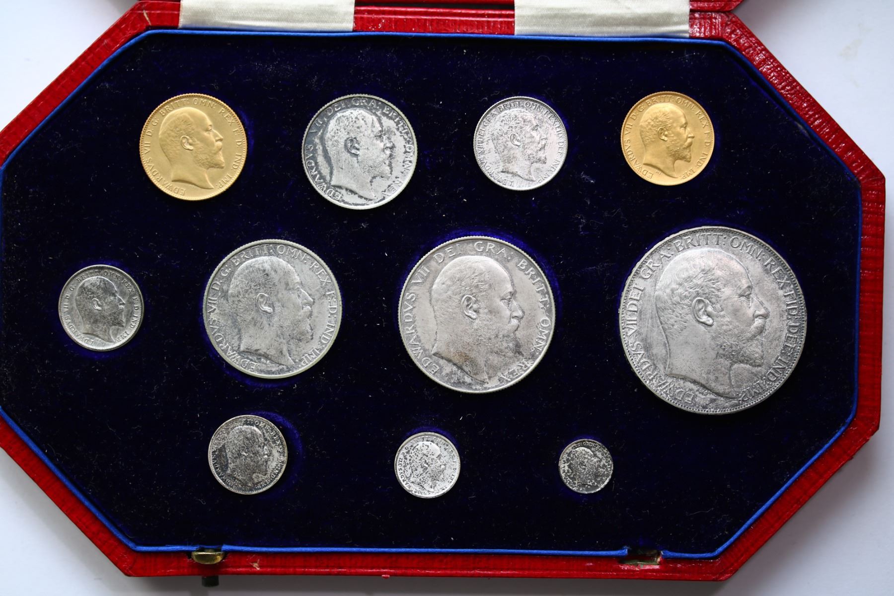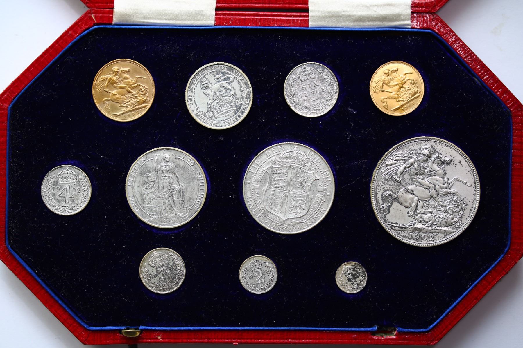 Great Britain 1902 11-Coin Specimen Set Including Gold In Original Case